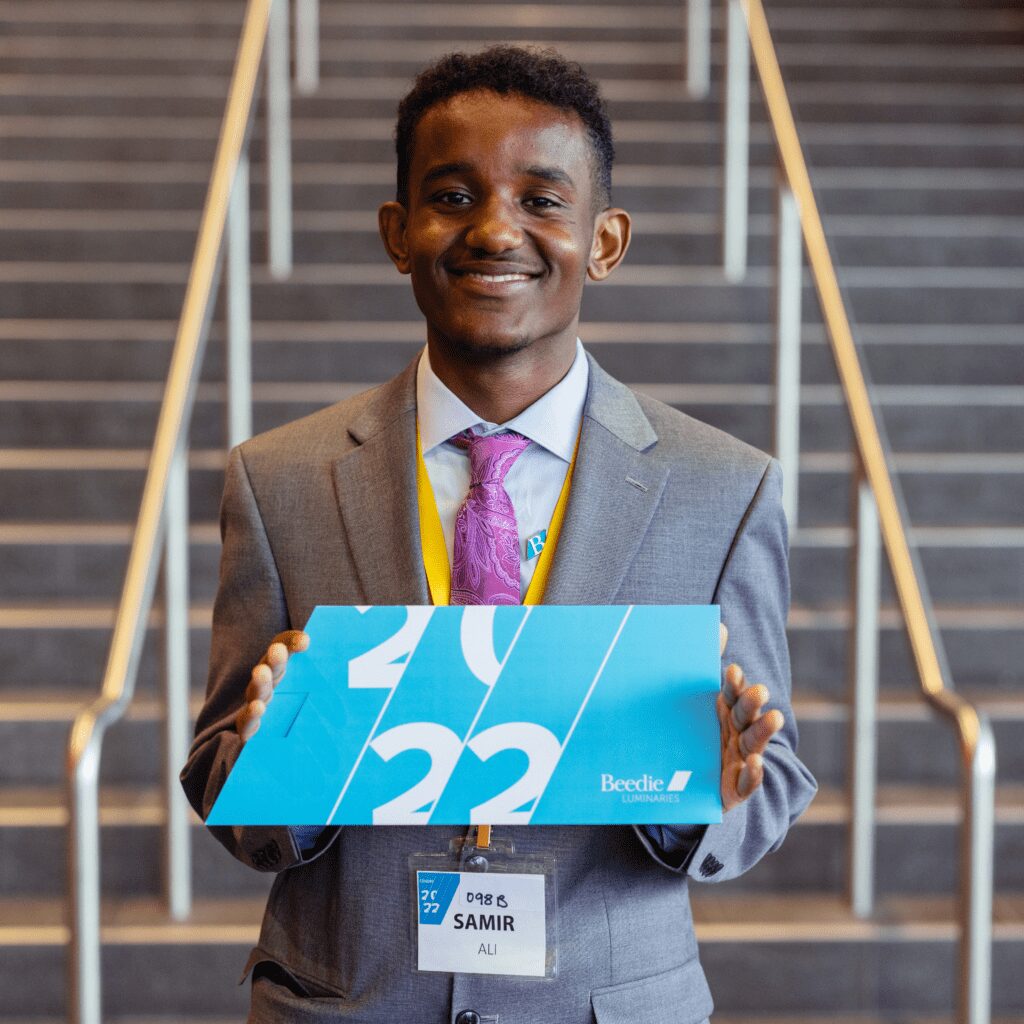 Samir Ali of Vancouver, British Columbia was the 2022 recipient of the Vistara Elevate Award. Samir was pursuing a computer science degree at the University of British Columbia. As a refugee from Kenya, Samir was passionate about using technology to help serve his community. For example, he developed a website that helps other newcomers to Canada more easily find the resources they need to support their families. He also volunteered weekly at the Junior Youth Empowerment Program where he mentored pre-teens.