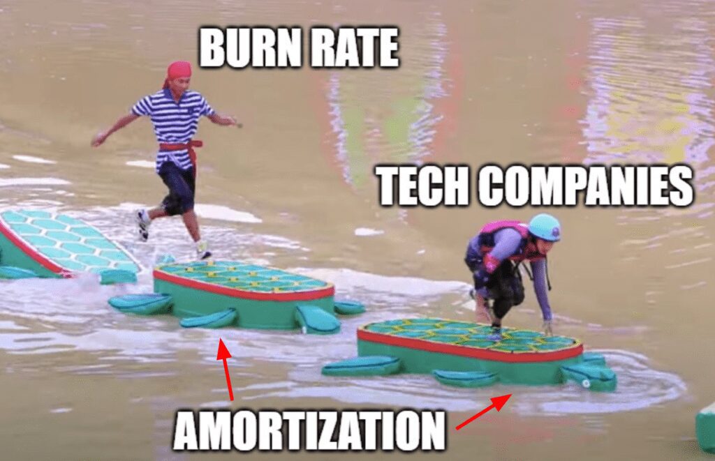 When building new products and acquiring customers, few growth-oriented tech companies generate positive cash flow, but rather, “burn” (we prefer to say “invest”) capital, often measured as a monthly “burn rate.” This burn rate typically consists of predictable expenses, such as salaries and rent. For companies with loans, this also includes monthly interest payments. But sometimes, out of nowhere, you may get SIDESWIPED (coincidentally, also the name of a challenge on American Gladiators) with something unexpected, knocking you off course. That untimely increase in monthly expenses is often due to the onset of amortization payments, what you’ll hear referred to as the “Amortization Cliff”.