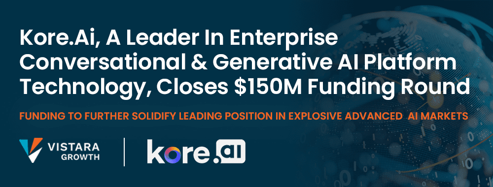 Vistara Growth is extremely proud to announce our continued support of Kore.ai with our participation in the transformative funding round led by FTV Capital, with NVIDIA, our co-investing LPs Beedie Capital and Nicola Wealth, and other existing investors, propelling Kore.ai’s leadership in Conversational and Generative AI-powered customer and employee experiences worldwide.